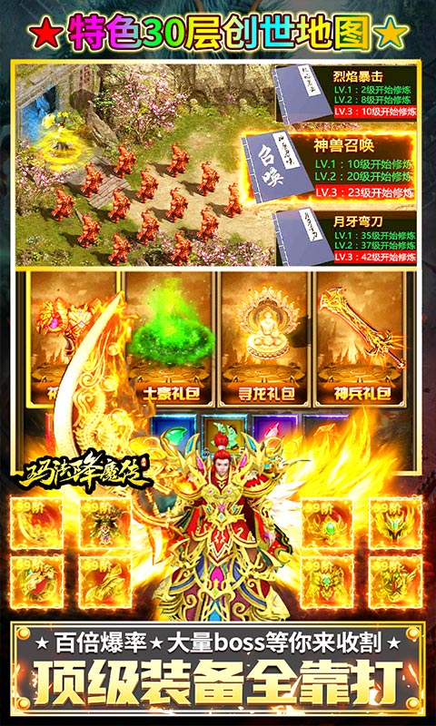 玛法降魔传是一款原汁原味的正版单职业传奇手游,完美继承了传奇系列的经典玩法精髓。游戏以东方玄幻为背景,构建了一个充满神秘色彩的玛法大陆,玩家将扮演降魔勇士展开冒险。从打怪掉宝、自由PK到攻城战,所有传奇老玩家熟悉的元素都被完美复刻,同时加入了时装系统、跨服玩法等创新内容,让传统与创新巧妙融合。绚丽多彩的画风搭配华丽技能特效,加上灵活多变的操作手感,带你重温当年与兄弟并肩作战的热血时光。