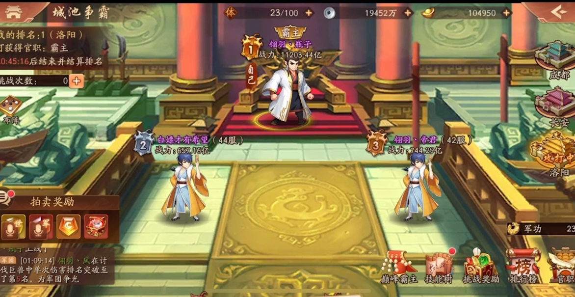 攻打城池时可以无限挑战,但每日奖励次数用完后就不会再额外获得资源了,所以记得合理分配体力。悬赏令的跨城池攻打需要100元宝,如果不是必要情况,尽量不要浪费。个人积分排行前20名能拿到不同档次的元宝和威望奖励,前五名还有额外红包福利,这可是赚元宝的好机会呢!