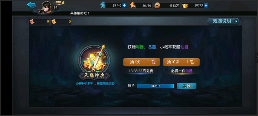 神兵碎片是兑换高级装备的关键道具。每次在天赐神兵玩法中抽取装备都能获得碎片,十连抽必得10个碎片。集齐一定数量后,咱们就能在兑换界面自由选择心仪的幻系列仙器。平民玩家可以慢慢攒元宝抽奖,虽然前期可能抽到绿色蓝色装备,但都能用来合成更高级的紫色仙器。