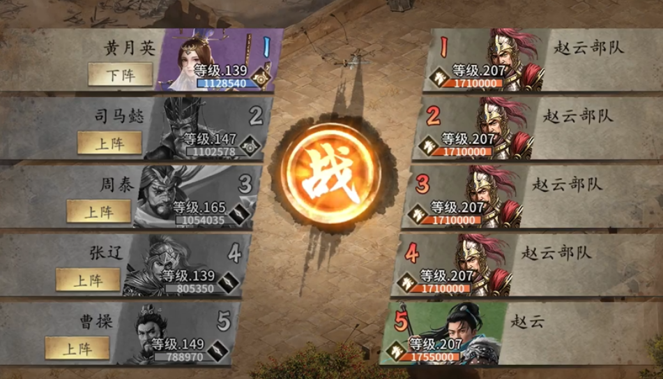 顺利通过207级赵云副本的关键在于合理搭配武将和掌握战法释放时机。这个副本的敌人赵云血量高、攻防强,几乎不吃战法伤害,但利用城池地形和黄月英的发挥空间可以找到突破口。建议优先提升装备到100级紫色套装效果更佳,貂蝉和甘宁是清理小兵的核心,开局貂蝉用魅惑战法反弹敌方技能,即使有城池保护也能造成负面效果。接着甘宁上场收割残血,貂蝉战法用完后再换黄月英带喷火车主攻,曹操用护盾保护她存活。