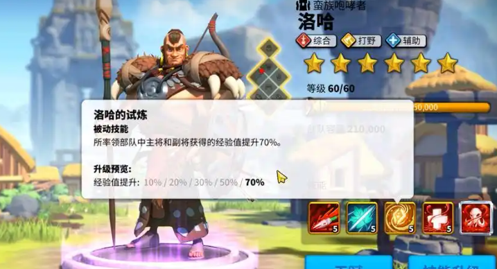 洛哈属于精英野蛮人单位,打野天赋和技能对其无效,且挑战部队会被禁疗(理查、君士坦丁等回血技能失效)。推荐使用高爆发单体输出武将组合,如源义经+曹操(骑兵)或亚历山大+查理马特(步兵),搭配贞德辅助BUFF提升输出效率。战前需准备符文(增加血量和攻击)、王国头衔(科学家头衔+5%研究速度)、联盟领地增益(攻击收益提升)等加成,以最大化剩余兵力比例。