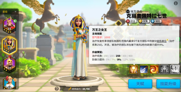适合跳星的武将主要包括采集型武将和部分打野型武将。采集型武将如埃及艳后、科斯坦察等,其核心技能在低星级时已具备较高实用性,跳星能快速解锁关键技能并提升采集效率。打野型武将如洛哈,跳星后可显著增强打野能力,但需注意技能搭配,避免因跳星导致关键技能无法解锁。紫色和橙色武将虽然理论上可跳星,但因成功率低且技能成长需求较高,通常不建议采用跳星策略。