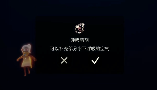 氧气管理是水下探索的核心机制。角色初始潜水时,屏幕上方光翼图标下方会显示蓝色氧气条,默认持续时间为60秒。氧气耗尽后,角色将进入窒息状态并开始消耗心火,最终导致光翼掉落。及时补充氧气是维持水下活动的关键。氧气恢复的主要途径包括靠近蓝色氧气泡泡、使用呼吸药剂或毕业面具提供的额外氧气缓冲。