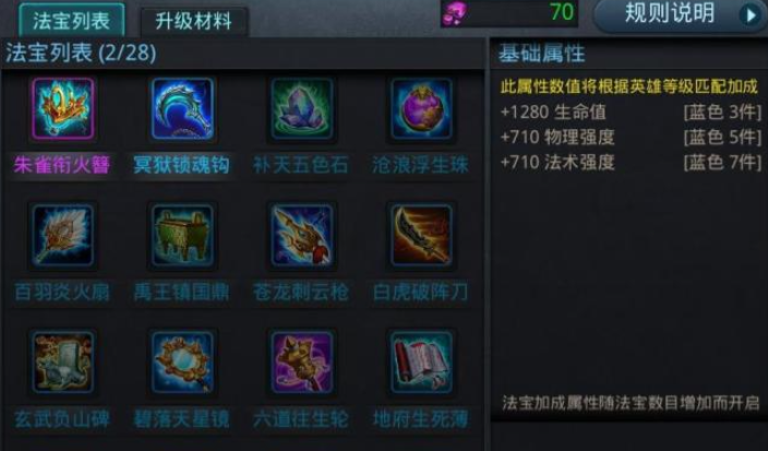 加持属性是升金后的核心优势,需通过装备其他法宝来激活。加持效果受激活法宝品质影响,紫色法宝提供基础加成,金色法宝则大幅提升数值。例如魂幡升金后,技能伤害穿透提升15%,效果增幅达30%。优先升级主力英雄的核心法宝,如魂幡、琵琶、朱雀等群攻型或破防型法宝,这些在篝火、试炼等玩法中收益最高。升金顺序建议先集中资源完成1-2件核心法宝,再逐步培养辅助型金色法宝用于激活加持属性。