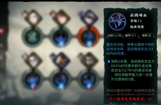 技能链构建方面,魔弦需以杜鹃啼血为核心,搭配银瓶破、血色罗裙等高倍率技能。嘈嘈切切作为44级解锁的辅助神技,可将5秒内伤害转化为真伤,但需注意释放时远离敌人以避免被反击。心法摆放需遵循主输出技能关联高暴击词条、破甲技能搭配穿透属性的原则,同时利用悟性系统合理分配紫黄心法数量。例如主力输出链可配置魔堡故人、黑白剑等高悟性心法,而辅助链则选择功能性更强的暗夜飘香等心法。