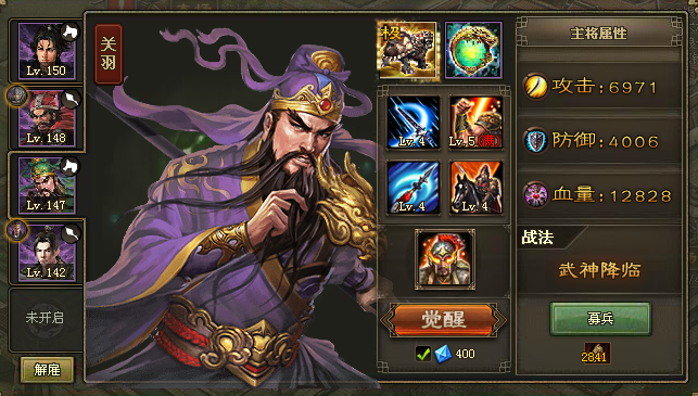 套装合成是提升战力的重要环节,比如玄武和霸下合成真霸下套装,属性会有质的飞跃。优先给主力武将配齐套装,比如黄忠穿朱雀、典韦穿霸下,能最大化发挥他们的特性。酒馆开放后记得用银币招募武将,不满意可以刷新,直到刷出关羽、诸葛亮这类T1级武将。觉醒武将需要消耗酒资源,可以通过副本掉落或商城购买,觉醒后的武将战力会飙升。