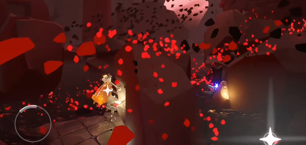 探索阶段需应对强风、落石及冥龙攻击,建议优先寻找掩体躲避。路径上红色晶石会消耗能量,需利用石灯补充。通过逆风区时需把握风力间歇期跳跃前进,管道区域则需观察冥龙巡逻路线再移动。该阶段核心目标是抵达伊甸之眼,过程中无需消耗任何游戏内付费资源。