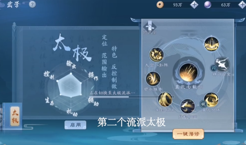 真武流派的技能如梯云纵和神门十三剑强调机动性与单体爆发,适合搭配提升攻击、暴击或破防的任脉属性;太极流派的九宫八卦阵和纯阳无极功依赖范围输出与生存能力,督脉提供的防御、抗暴或气血加成更为契合。需注意,任脉侧重进攻属性增幅,督脉则偏向防御与生存强化,两者需根据PVE或PVP场景灵活调整。