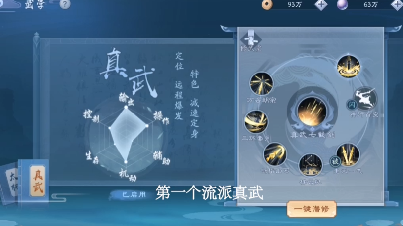 武当门派在新笑傲江湖中分为真武和太极两大流派,其核心机制围绕剑气积攒与消耗展开。剑气上限为5点,不同剑气状态下释放职业技能会产生截然不同的效果:当剑气小于5点时,消耗1点剑气对小范围目标造成中量伤害;当剑气满5点时,消耗全部剑气对大范围目标造成爆发伤害。这种设计要求玩家根据战斗环境动态调整剑气使用节奏,真武流派侧重远程战术牵制与爆发输出,太极流派则擅长远程大范围持续输出与霸体反击。