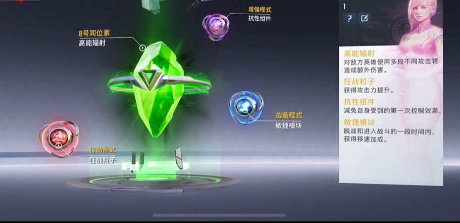 8号同素位推荐选择灵能印记,这能有效提升自保能力,让咱们在装备成型后依然有持续作战的资本。行动模式建议带抑制粒子,因为她的三技能自带减速效果,搭配这个核心能进一步强化伤害,提高刷新技能的几率。增强程式选抗性组件是为了避免被控到死,关键时刻能争取脱身或反打的机会。战备程式用冷却模块最实用,减少技能真空期让输出更流畅。