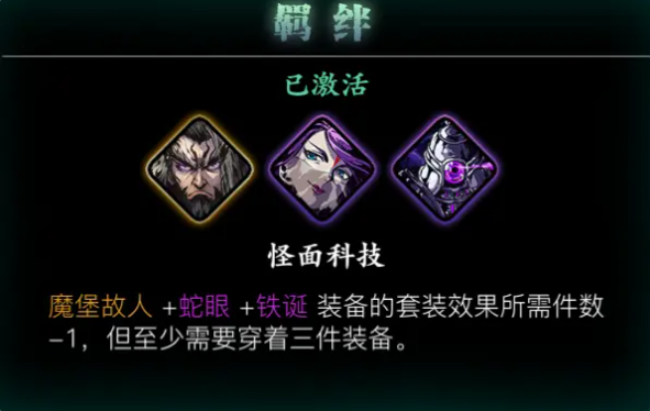 羁绊搭配方面,魔堡故人最好和蛇眼、铁诞组成怪面科技羁绊。这个组合能减少2件套装需求,让咱们更容易凑齐女王套或龙套的强力效果。如果走长链流派,可以再补上暗夜飘香和芳华邪后,利用羁绊的冷却缩减提升手感。副心法选择优先看攻击、技能伤害和暴击伤害加成,毕竟魔堡的核心定位是辅助输出。