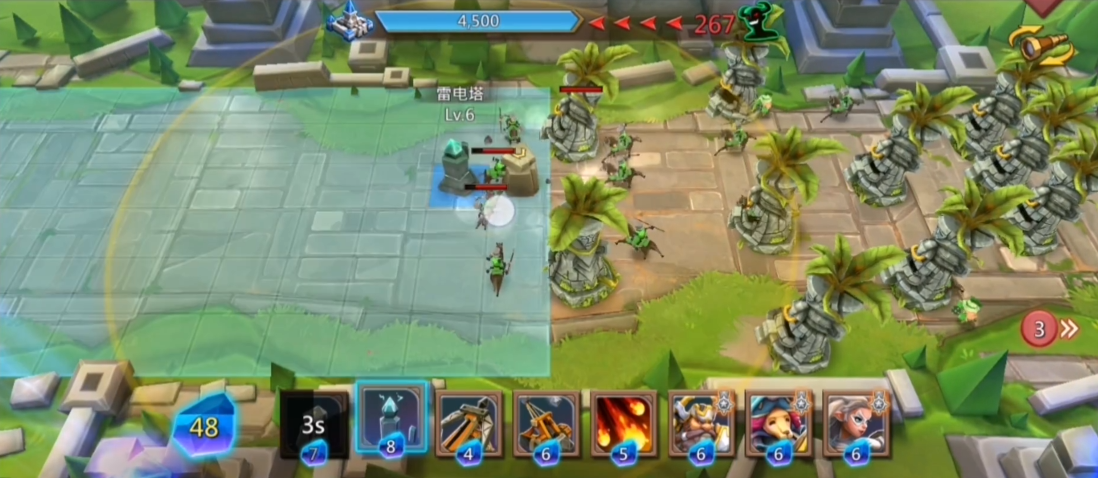 当敌方基地血量低于30%时会触发增援,应保留魔像和炮车用于清理新增防御塔。海量步兵冲锋时需配合图腾的200%英雄伤害加成快速收割,但要注意控制冲锋距离避免被炮台集火。通关后解锁的卡牌种类将提升后续章节的战术灵活性,建议优先解锁对英雄特攻类卡牌以应对高阶关卡。