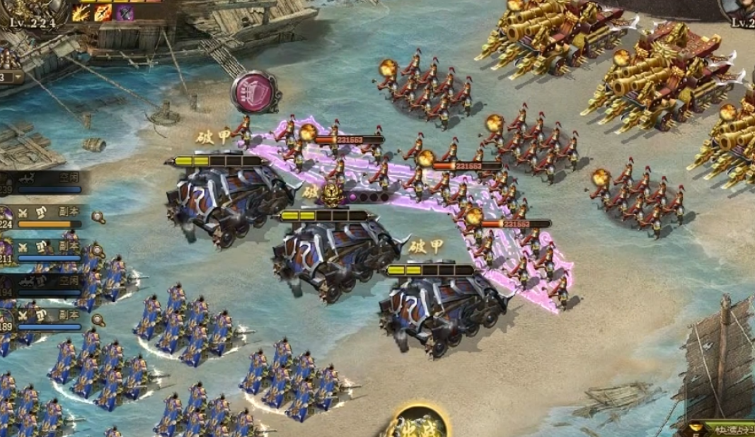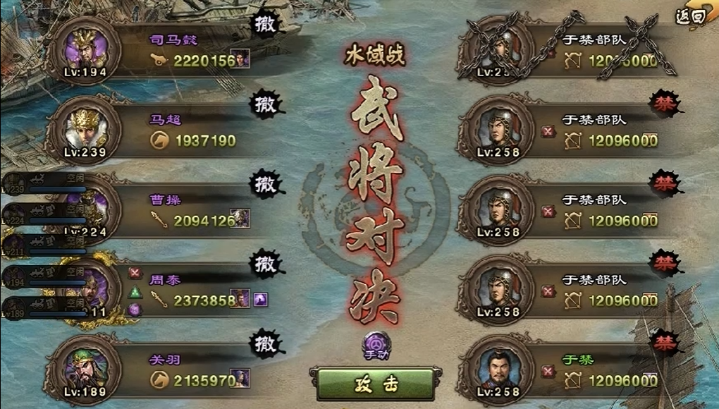 攻城掠地258关键在于武将搭配、装备选择和战术调整。首先推荐使用马超或甘宁打头阵,这两个武将的统率较高,能有效抵挡敌方战法伤害。装备方面建议全用强防、强攻和血量属性的紫装,三星紫装是最低门槛,强防属性最好堆到300左右。兵器等级50级左右即可尝试,非RMB玩家可能需要多试几次调整细节。