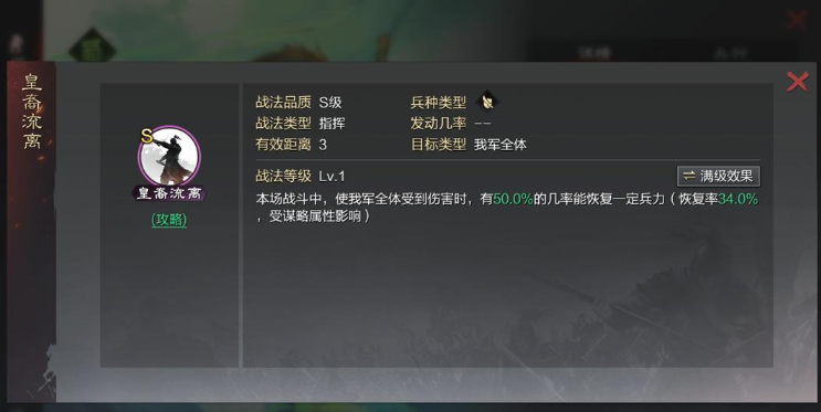 关于叠加冲突问题,指挥类休整效果如青囊与指挥类急救效果可共存,但两个休整类战法同时生效时仅保留数值更高的效果。发现青囊与刘备皇裔流离同时作用时,兵力恢复会显示两条独立记录,而青囊与援军秘策同时携带则只触发恢复量更高的那个。建议避免给同一武将配备多个休整战法,可将青囊分配给前锋,中军或大营搭配急救类效果。