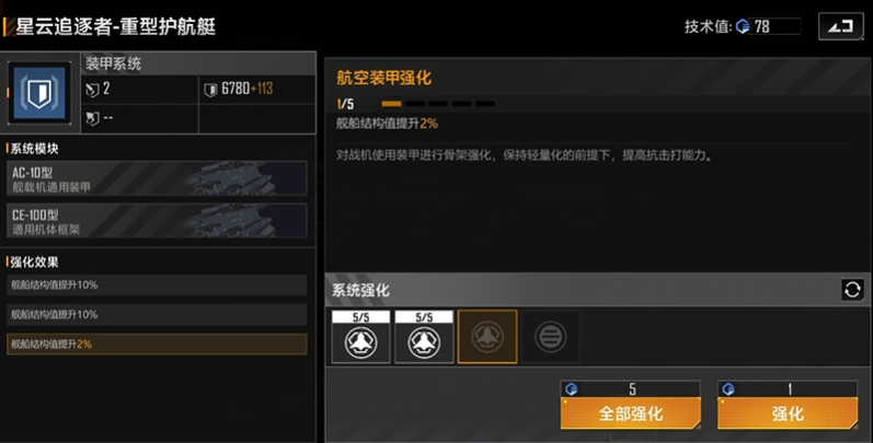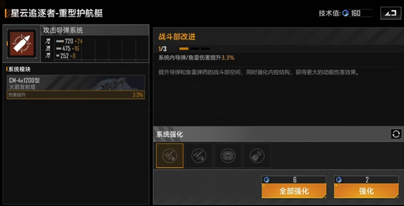 生存能力强化方面,装甲系统的附加装甲收益较低,建议优先完成主武器强化后再考虑。动力系统中的紧急规避模块可提升15%闪避率,配合护航艇固有机动性,能有效规避导弹类攻击。对于技术点有限的玩家,可放弃部分命中强化,转而保证基础伤害与冷却属性达标。当面对战机群时,脉冲武器的AOE特性已具备天然优势,无需额外针对性加点。