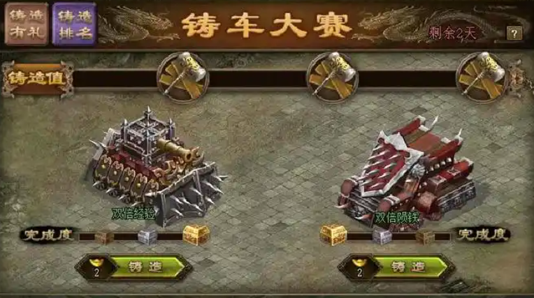 战车的保护也很重要,装备碉堡和墙体能提供直接防御。升级墙体和石碉堡可以增加车的防御能力,这样在战场上才能更持久。别忘了给车装上合适的武器,比如箭矢、弓箭或火枪,它们能大幅提升攻击力,还能实现远程打击。根据对手的特点调整火力投向,比如遇到防御强的车,咱们就得准备更猛的火力来突破。