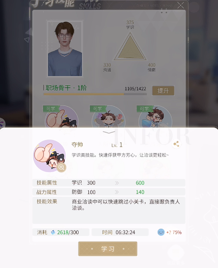 通过商城购买技能书解锁时尚技能,学习后能增加角色的魅力和颜值。技能加点根据你的需求来分配,建议优先提升与职场相关的技能。团队成员的能力值会直接影响转职成功率,所以每天记得让他们参加培训。办公室的装饰也很重要,精心布置可以提升整体魅力值,这对团队考核有帮助。