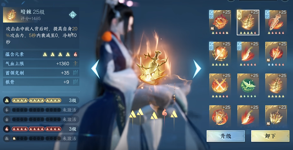 装备养成方面,武器打造推荐火属性词条,防具选择银泽腰带等增加元素抗性的部件。特质系统优先偷师碎梦的刀意与蚀残月提升会心伤害,或选择铁衣的金刚铁壁增强生存。需注意命中属性需维持在3300会心建议堆至4500阈值,过低的命中会导致元素技能出现未命中浪费机制。独珍装备优先选取提升元素伤害的傀舞三姬系列,配装时需平衡输出与生存属性。