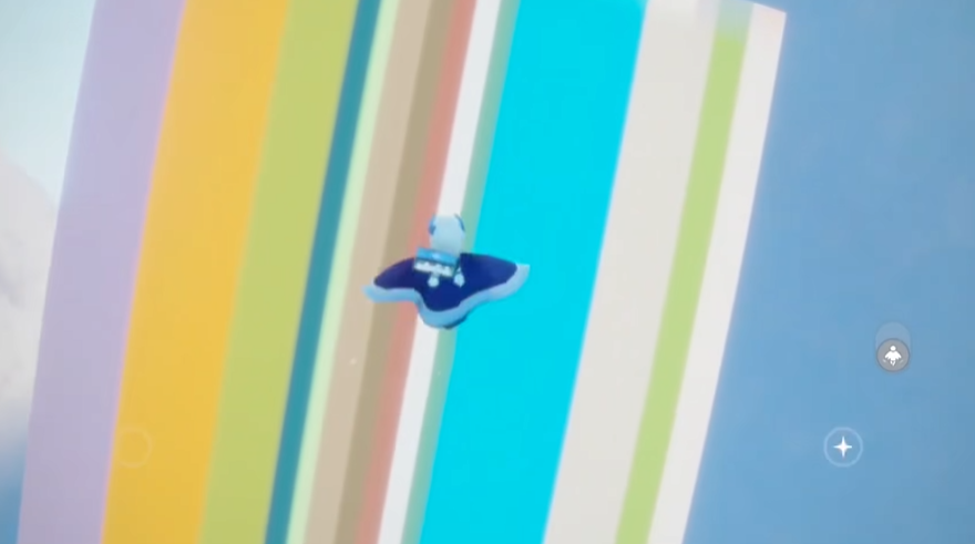 飞行过程中需要注意翅膀等级和能量管理。建议玩家先收集足够的光之翼提升飞行能力,否则可能无法抵达目标高度。飞行路线应紧贴云层,利用云层恢复能量。当飞到云层约三分之二高度时,会看到一个云层凹陷的平台区域,这里就是彩虹桥所在位置。如果第一次未能发现,可以多次尝试调整飞行角度和高度。