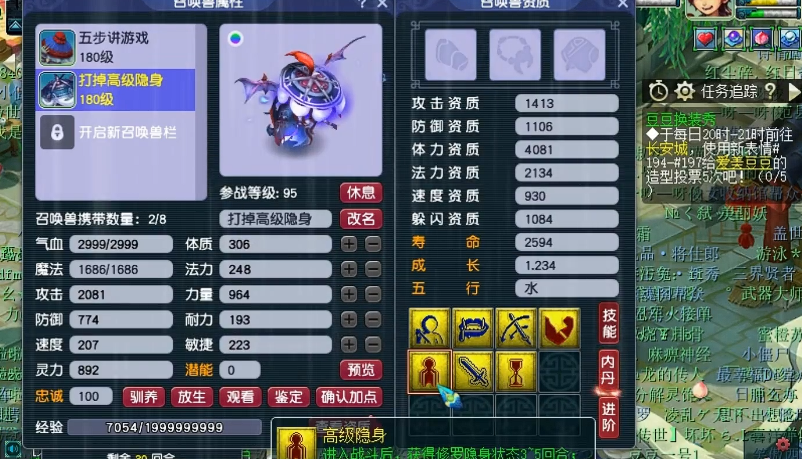 高级隐身是咱们在游戏中非常实用的技能,不管是PVP还是PVE都能发挥重要作用。想要打掉宝宝身上的高级隐身技能,最直接的方法就是给它打书覆盖。通常可以选择高级必杀、高级连击或者高级偷袭这类攻宠必备技能来顶掉隐身。打书时建议先把技能格子往前移动,隐身出现在前两格时更容易被新技能顶替。