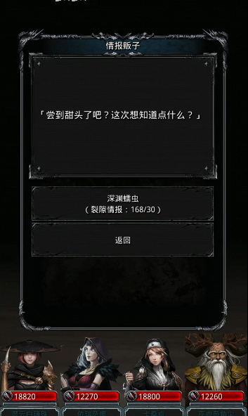 完成整个情报任务线需要收集110个裂隙情报,过程会比较漫长。最后一个任务是50个情报换生命之源,在53层可以拿到源之铠。如果发现情报贩子不给你新任务,可能是因为主线进度不够。装备方面优先选择双抗高的流血甲,骑士记得带上黄沙之盾。