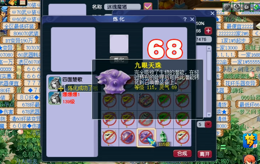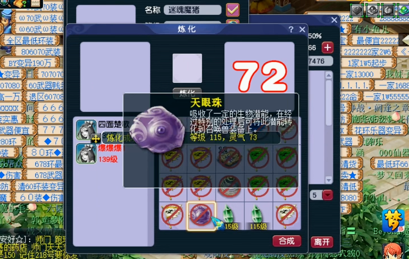 天眼珠分为普通天眼珠、三眼天珠和九眼天珠三种类型,品质和灵气直接影响最终打造的召唤兽装备属性。玩家可以通过炼化系统将低灵气天眼珠合成为高灵气天珠,这个过程需要消耗体力和游戏币。具体操作是将两个低灵气天眼珠放入合成界面,在灵气数值达到50左右时停止,这样有较高概率获得高灵气天珠,甚至可能合出三眼天珠。高灵气天眼珠适合用于修理宝宝装备,而三眼天珠则更适合打造新的召唤兽装备。