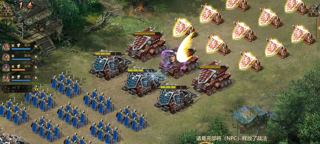 战斗过程中需注意地形与战术克制关系。远程兵种在该副本中输出强劲,需优先部署重甲兵种降低伤害。关羽上场后应避免硬碰硬,利用平原突击战术迂回消耗敌方兵力,并在适当时机释放战法。太史慈的两次战法连发可有效压制敌方第二梯队,残兵则用于吸收后续战法伤害。姜维作为第三武将,主要承担战法接力与承受诸葛亮首轮攻击的任务,需确保其装备真凤凰套装以最大化生存能力。