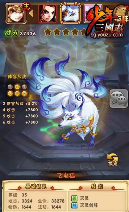 飞电狐作为一款橙色品质战宠,具有较高的性价比,它的技能能为全队提供buff效果,包括前排伤害加成和后排攻击提升,这使得它在各种玩法如叛军围剿和跨服竞技中都表现稳定。飞电狐的精炼系统还能进一步提升全属性,使得它在长期培养中价值显著,适合吴国玩家在各种战斗场景中稳定发挥。