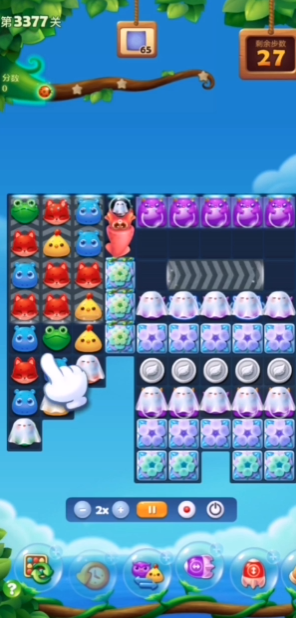 开局时不要急于随意消除,而是应该先花时间仔细观察蜗牛行进路线上的障碍分布,特别留意哪些区域需要横向消除,哪些需要竖向突破。优先处理那些直接影响蜗牛移动的关键障碍,比如路径上堵住的雪块或即将蔓延的毒液,通过优先清理这些点可以为蜗牛开辟更顺畅的道路,避免后期步数紧张时陷入僵局,毕竟每一步都宝贵,早期计划能显著提高通关效率。