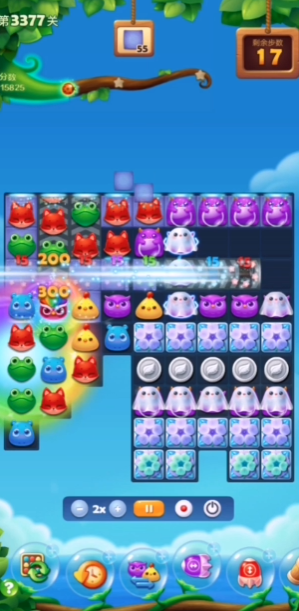 对于毒液和毛球这些特殊障碍,需要特别留意并及时处理。毒液会扩散并阻碍蜗牛的道路,因此要及时用竖向消除或爆炸特效来清除,防止其蔓延占据空间;毛球则会分裂,一个变两个,在不同区域使用不同的特效最佳,比如在毛球上方位置多用直线消除来控制其扩散。蜗牛移动时会顺带消除银币,合理利用这一点也能节省宝贵的步数,使消除工作更聚焦于核心目标。