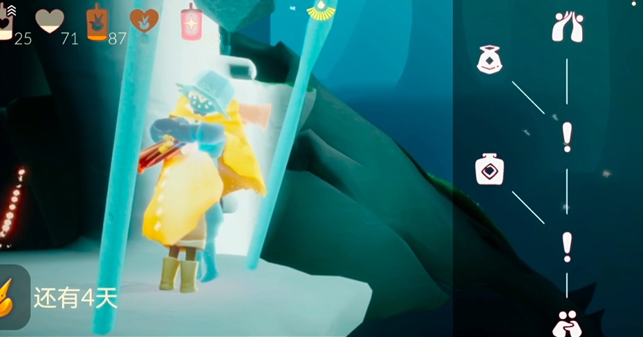 向导先祖给的任务可能包括收集记忆碎片、多人协作打坐或者燃烧黑暗植物等,不少任务都需要2到4名玩家一起配合才能完成。比如有的任务要求双人同时在指定地点跪坐来触发动画,有的则是需要两个人一起触碰桥上散落的碎片。进行这类任务时,可以多使用动作栏里的呼喊功能,这能帮你快速定位队友或者找到任务光源。任务进度可以在屏幕左侧的光圈实时查看,完成之后记得返回树屋向向导先祖提交。