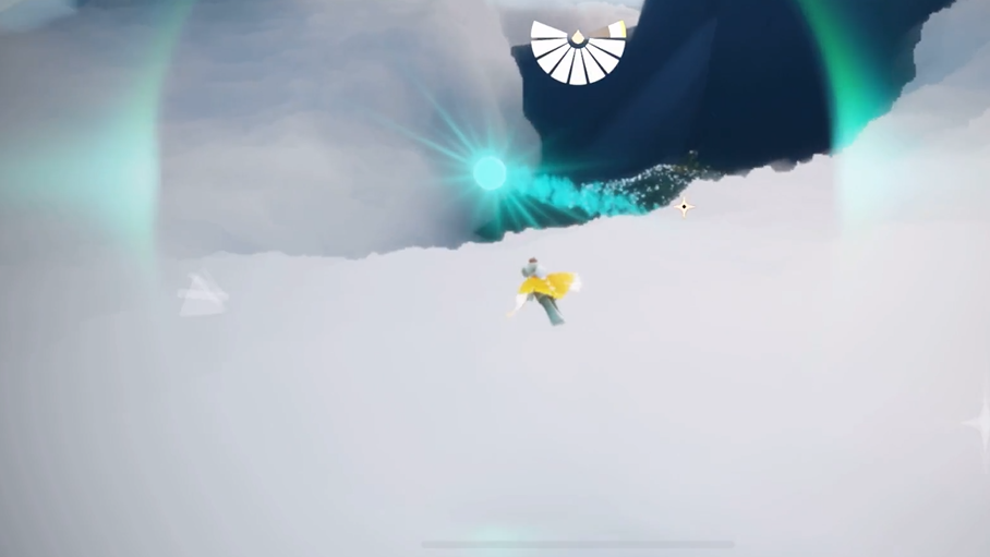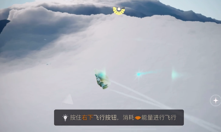 在寻找青色光芒时,有几点需要特别注意。青色光芒在云层中的移动速度并不快,但有时会因为视角关系被厚厚的云朵挡住,所以最好保持耐心在云海上方盘旋观察。当青色光芒从云缝中显露身影时,抓住时机平稳飞向它,避免因为飞行太快而错过触碰机会。如果等待时间较长还没出现,可以稍微调整一下飞行高度,有时候光芒会在较低的位置穿过。