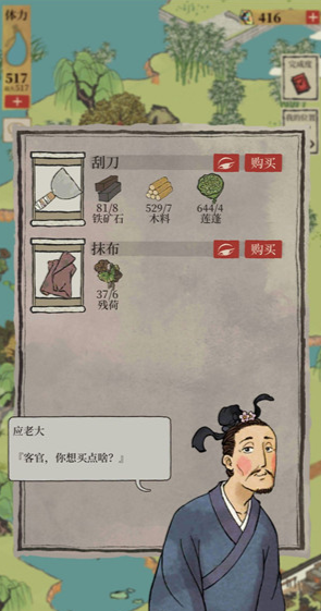 玩家需要进入杭州探险的第三章,在地图上找到名为旧事小蛮的店铺,然后与NPC应老大对话来兑换刮刀。兑换所需的具体资源包括8个铁矿石、7个木料和4个莲蓬,这些材料可以通过游戏内的采集或任务获得。准备好这些资源后,就能顺利换取刮刀,用于后续活动。