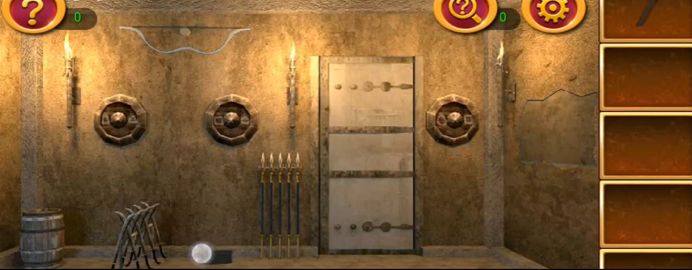 拿到基础道具后需要将它们组合起来以发挥更大作用。将锤柄和锤头连接,制作出一把实用的锤子。接着点击门旁的矛架,获取矛头并利用它取下墙壁上方的弓。再用刀打开左侧的木桶,从中取出一支箭矢,然后把箭和弓组合成完整的弓箭。这个过程要求玩家合理运用逻辑思维,确保每个工具都派上用场。
