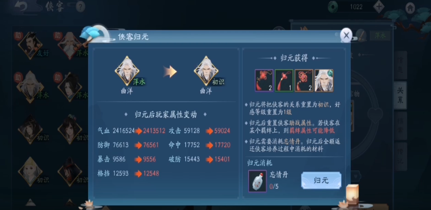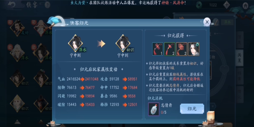 在进行归元或转职操作时,需要注意一些细节,例如转职后会有七天的冷却时间,期间无法再次转职,因此建议玩家提前规划好职业路径;同时侠客归元后返还的材料可以用于培养其他侠客,从而优化整体战力配置。