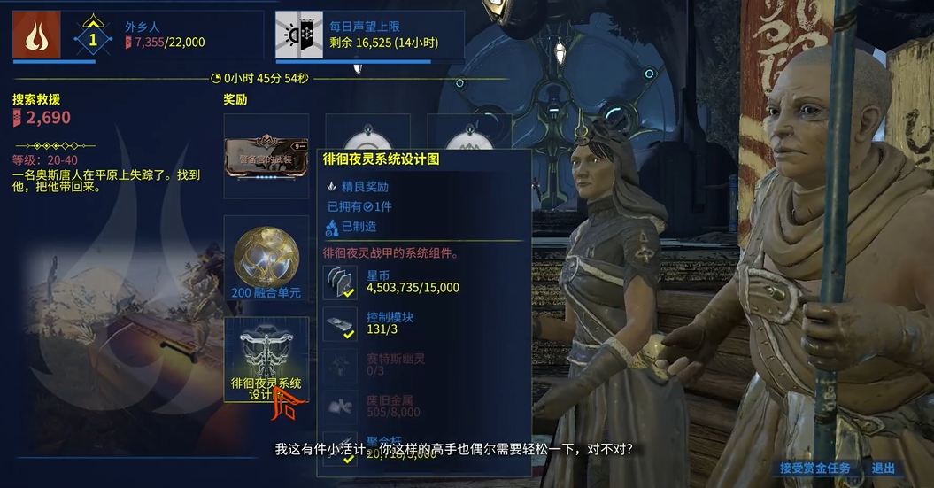 装备好面具后,任务的核心场景将在地球的夜灵平原展开,并且你必须确保在夜晚时分进入平原,因为白天是无法触发相关剧情点的。进入平原后,任务会引导你按顺序前往三个特定的剧情触发点,这些地点通常会有明确的标记指引。完成这三个触发点的互动后,任务会进入下一个阶段:你需要通过完成夜灵平原上的赏金任务来获取Revenant战甲的三个部件蓝图,包括机体、系统和头部神经光元。获取蓝图后,记得回到飞船的铸造舱将它们制作出来。