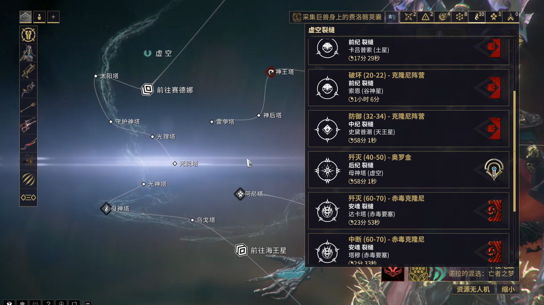 木星的IO防御任务被广泛认为是刷取前纪遗物的优选,完成前十波防御可以稳定获得两个前纪遗物,效率很高。对于需要组队且追求更高集中掉落率的玩家,赛德娜的拦截任务也是一个经典选择,虽然通常需要队伍配合,但遗物掉落集中于目标轮次。虚空裂缝任务列表中的捕获任务,如Ukko,因其快速完成的特点,常被用来速刷各种遗物以碰运气,适合在缺少特定遗物时进行补缺。