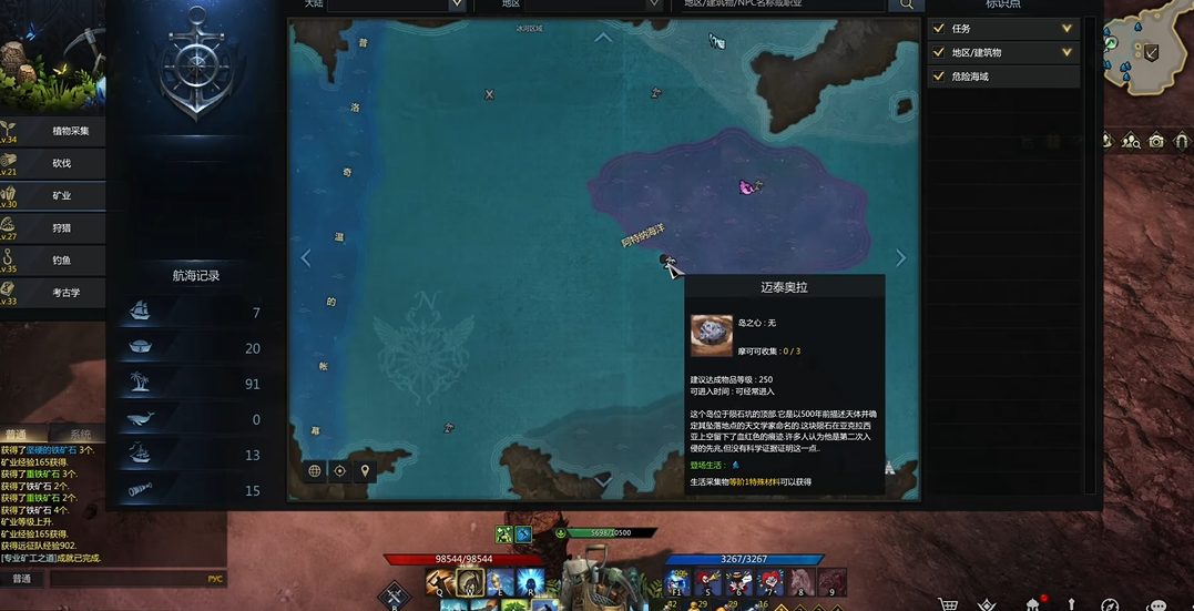 推荐在伯尔尼北部海域的迈泰奥拉岛或卢特兰东部的唱歌岛进行挖矿练级。这两个岛屿的共同特点是矿点资源相对集中且没有主动攻击的野怪干扰,能够让你在绝对安全的环境中专注于采集动作,从而最大化经验获取效率。其中迈泰奥拉岛被普遍认为是高效的挖矿升级地点,岛上仅有矿石资源,矿点密集,十分适合玩家单人专注练级。而位于东卢特兰和小人国旁边的唱歌岛,同样以材料丰富且无野怪著称,是另一个理想的初期采集地点。