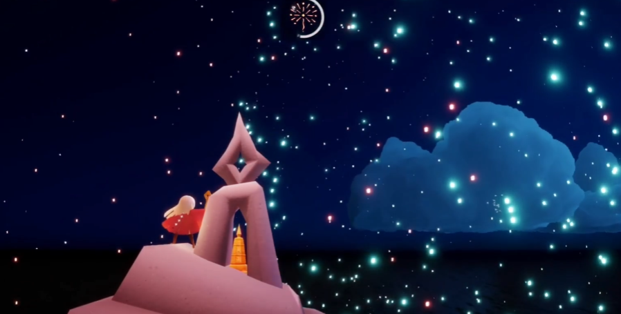 背在身上的魔杖,也就是大家常说的烟花法杖或者魔法棒,在游戏里可以说是又好看又有用的道具。它核心的用处就是能放烟花,你拿到手之后可以无限次地使用,随时随地都能在天空王国里放出绚丽的烟花效果,特别适合和朋友一起庆祝或者开心的时候玩。这个放烟花不只是好看,在像暮土、禁阁那些黑乎乎的地图里,一下子把烟花放出来,周围都会亮堂堂的,能帮你暂时看清楚路,算是个挺方便的临时照明工具。
