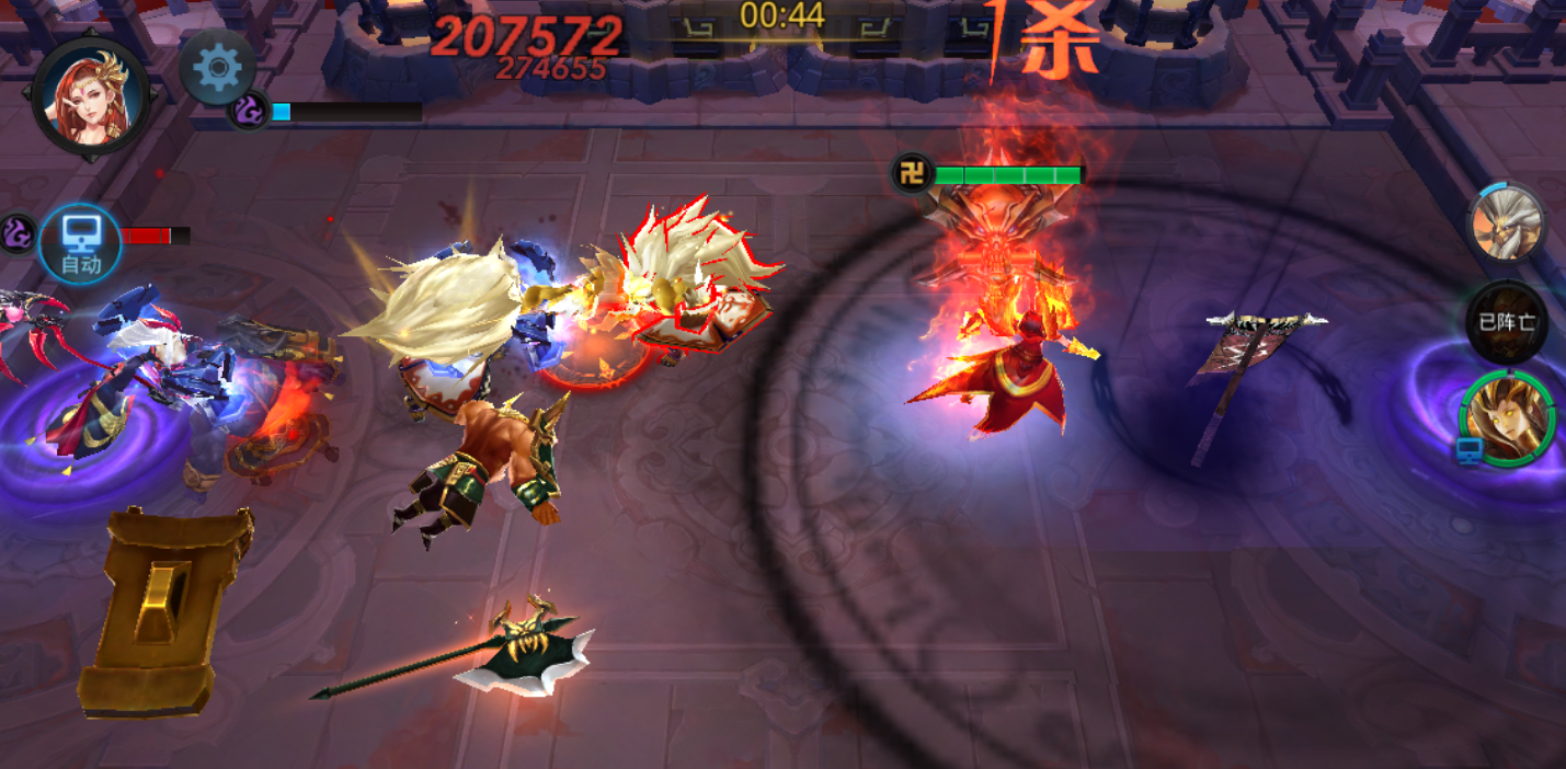 实战中需掌握技能释放节奏,起手用一技能减速敌人并叠加灼烧,接二技能封锁走位区域。大招变身时机选择在敌人聚集或残血阶段,利用伤害加成和技能重置实现爆发收割。在篝火等PVE场景中,可配合青狮精的攻速加成与沙僧的持续输出来最大化伤害。PVP时则需注意走位保持距离,通过火焰区域的持续伤害压制敌方核心输出。