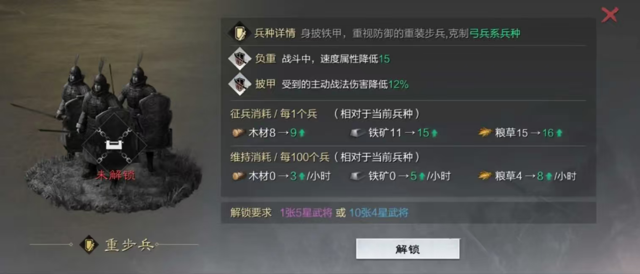 培养赠送的曹操和皇甫嵩后在开荒阶段最重要的是合理分配体力,别一次性把体力用完,留一些应对突发情况。打地时注意兵种克制关系,弓兵克骑兵、骑兵克步兵、步兵克弓兵,遇到克制阵容胜率会高很多。前期建筑升级顺序很关键,主城、校场、募兵所优先升,资源建筑升到7级就够用,兵营解锁后每级都能增加带兵量,对战力提升帮助很大。记得每天用铜币十连抽卡,攒四星武将和战法经验,三星卡可以直接转化成战法经验。