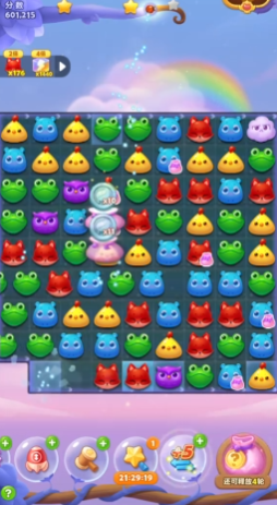 横向五个相同糖果能生成直线消除特效,L型或T型排列则会产生范围爆炸特效。两只魔力鸟相邻交换会引发全屏清除的最强效果。当特效动物相邻时,交换它们能产生更华丽的消除效果。平时要注意积攒特效,在最后阶段集中释放,这样能最大化利用每一步的价值。特效使用时机很重要,过早释放可能浪费效果。