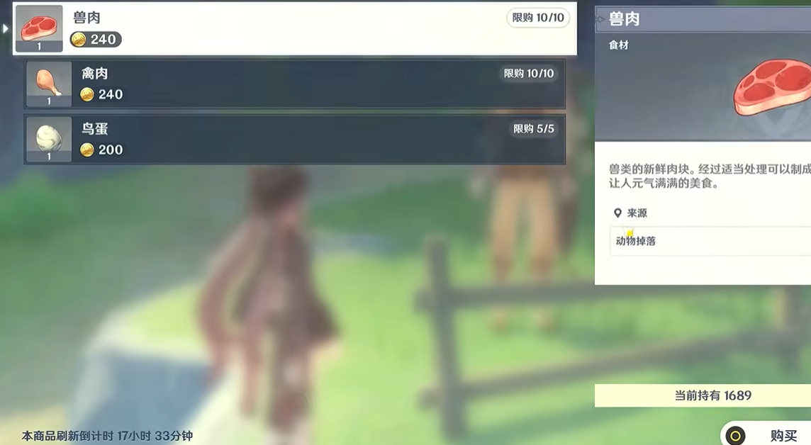 除了主动狩猎,每天记得去清泉镇找猎人杜拉夫购买兽肉。他每天限量出售10块兽肉,虽然需要花费摩拉,但能稳定补充库存。如果摩拉充足,化城垒的阿什帕齐和阿如村的阿扎莱也提供类似服务,不过价格略高。这种方式适合不想花时间跑图的玩家,尤其当急需兽肉时能快速解决问题。