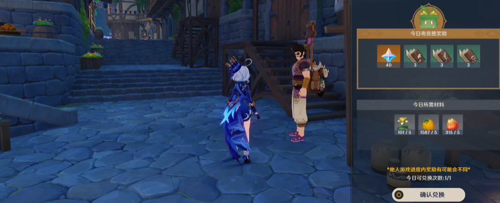 原神百货奇货第三天活动需要玩家收集甜甜花、树莓和日落果三种材料,与蒙德城商人立本兑换奇货匣奖励。立本的位置通常在晨曦酒庄大门右侧,具体坐标可通过地图追踪功能定位。每日提交材料后可获得40原石基础奖励,累计兑换五次还能解锁额外礼盒。若对当日奖励不满意,可前往好友世界选择其他属性的奇货匣。