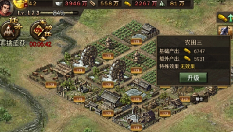 粮食抢收是咱们快速获取资源的重要方式之一。改造后的农田每天都能抢收一次,每次大约能拿到150万粮食,这可是稳定收入来源。记得优先升级农田等级,产量会跟着提升,后期改造后总收益甚至能达到千万级别。抢收操作很简单,点开农田界面直接点击按钮就行,但要注意每天只有一次机会,别浪费了。