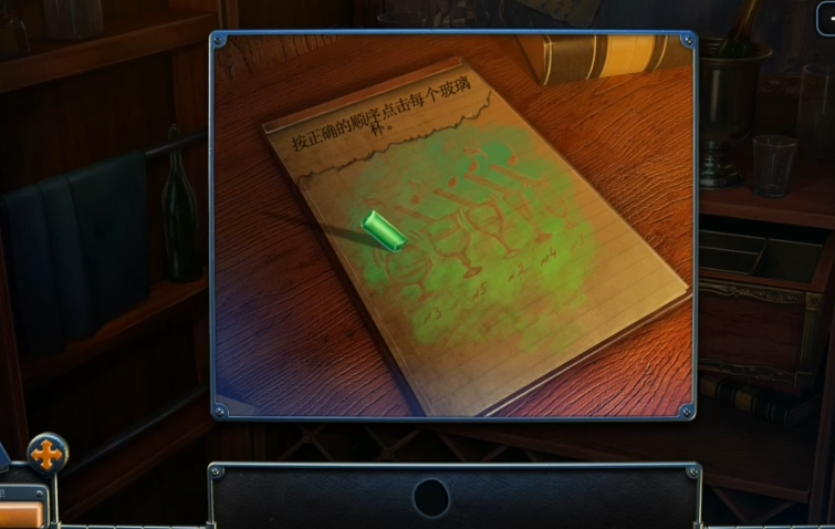 首先需要点击场景中的桌子,将显影剂放置在桌面上,随后将草稿放入显影剂中浸泡。浸泡完成后,草稿会显示一组序列,玩家需记下该序列以便后续解谜。接着点击灯泡位置,利用序列信息完成后续操作即可找到书。