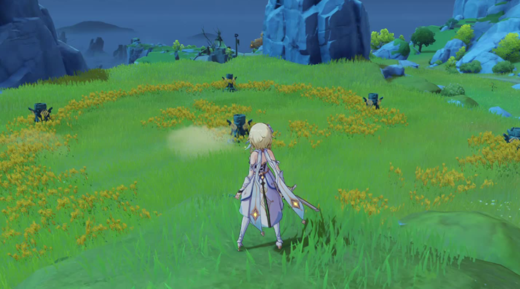 归离原区域的六个岩柱子点亮顺序需要遵循螺旋状花丛的引导。从高处观察可发现花丛呈顺时针方向排列,最外围的岩柱为首个点亮目标,后续按顺时针方向依次激活剩余岩柱。使用岩元素攻击即可完成点亮操作,全部激活后将触发小型首领战,建议携带对空能力较强的角色应对。