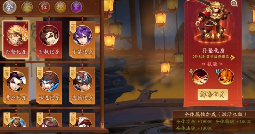 主角时装是提升战力的关键要素,红时装或金时装能大幅增强技能效果。若无法通过VIP礼包获取高级时装,可通过身外化身活动积累化身符兑换。时装选择需结合阵容需求,例如输出型阵容适合猛将时装,防御流派则优先神射时装。同时主角化身系统提供额外属性加成,红化身如孙坚或曹丕能显著提升特定战斗效果,需根据敌方阵容灵活调整。