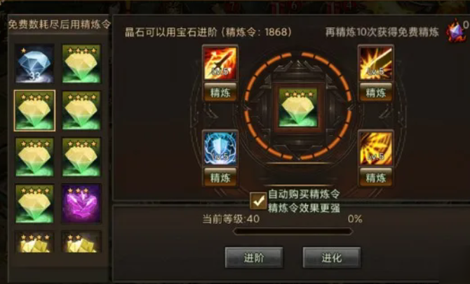 技能神石的进化条件比较严格,需要技能石达到20阶,并且斩杀技能必须升到60级。如果技能等级不够,就得先通过精炼提升技能等级。精炼时建议不要盯着一个技能猛点,可以轮流提升不同技能,这样成功率会更高。如果某个技能卡在3级或4级很久,可以先用1级宝石垫一下,再回头继续精炼,这样更容易突破瓶颈。