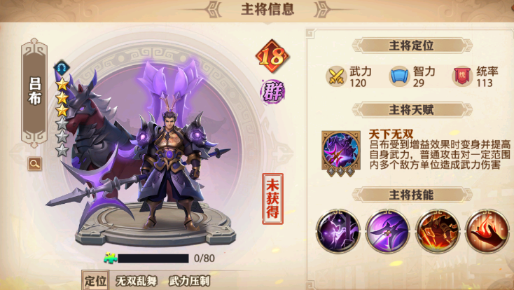 吕布作为游戏中最强力的重骑兵主将之一,拥有极高的爆发伤害和生存能力。他的技能组合包括嗜血、无双乱舞、暴虐和甲骑具装,能够在战斗中通过暴击回血、范围输出和攻击叠加快速提升战斗力。面对这样的对手,我们需要从阵容搭配、兵种克制、技能打断和资源分配几个方面入手。